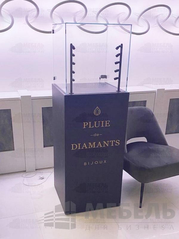 Витрина выполненна ЛДСП (цвет можно изменить) и стекла, габаритные размеры 450х450х1600, дополнительно можно установить освещение.