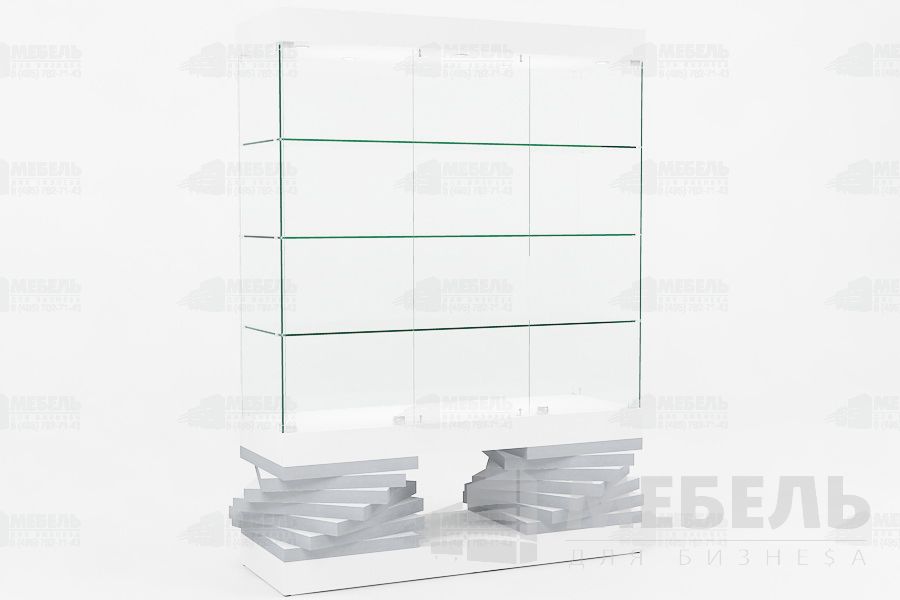 Витрина стеклянная для экспозиции кубков и наград из стекла 6мм со стеклянными полками, стеклянные двери на замке, каркас из панелей ЛДСП 50мм. Габариты витрины 1530х530х2100мм Высота стеклянной части 1300мм. При необходимости возможна установка диодных светильников в верхнем фризе. Цвет каркаса витрины можно изменить.