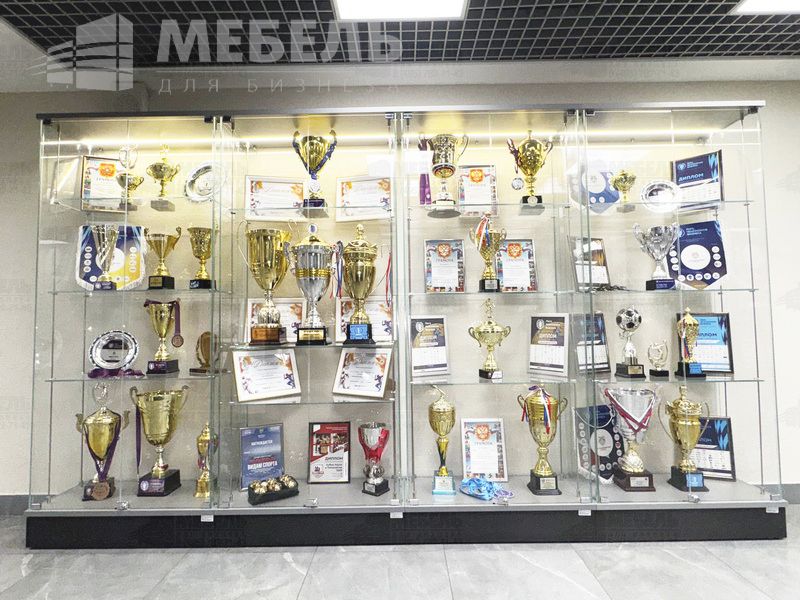 Высота стеклянной части витрины 1800мм. Размеры: 1200 х 500 х 2100мм. Возможна установка освещения и закалка секла за дополнительную плату.