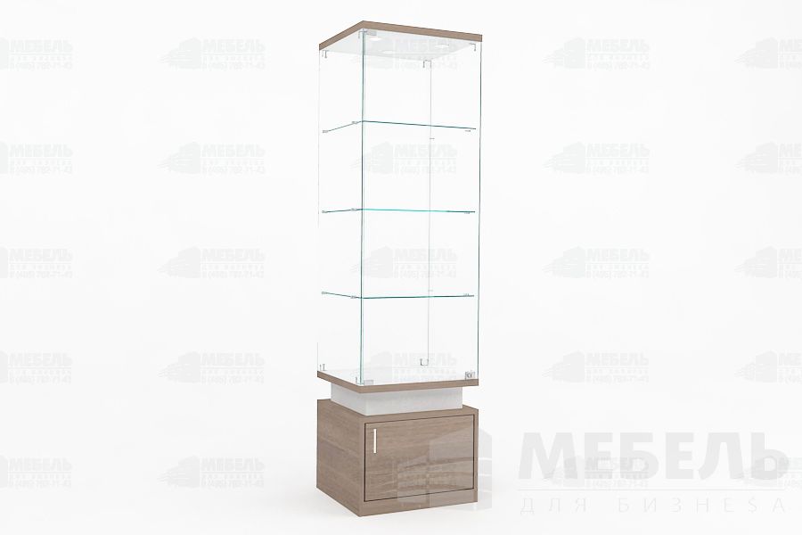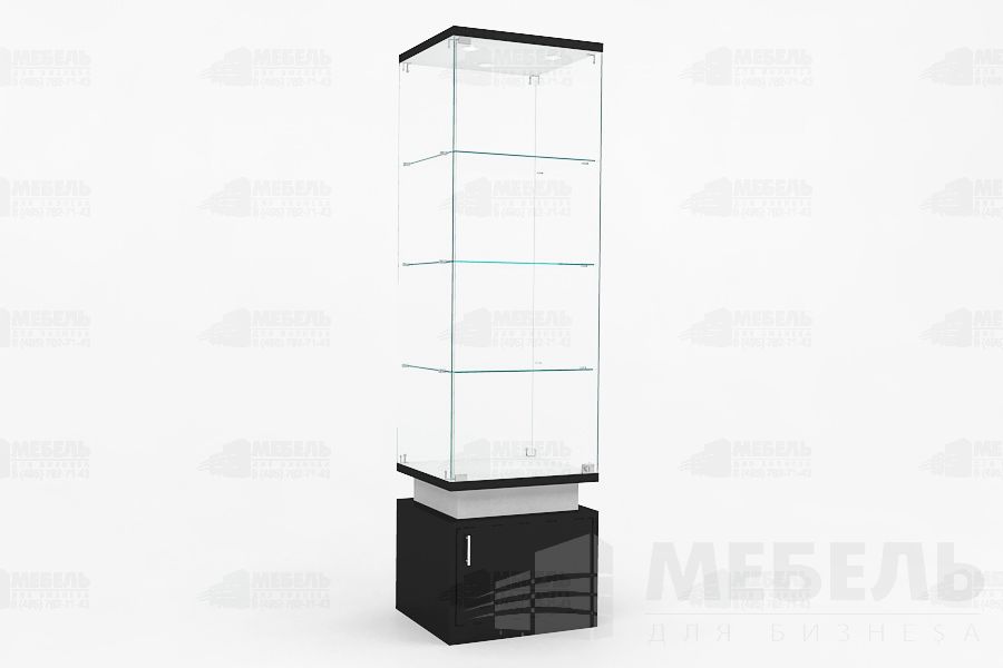 Стеклянная витрина для музея из ЛДСП и стекла 550х500х2000мм. высота стеклянной части 1450мм с двумя распашными стеклянными дверьми на замке, стеклянные полки 3шт. (возможно дополнительно установить прутковую систему передвижения полок), задняя стенка стекло 6мм, основание тумба (высота 500мм) с распашными дверьми на замках.