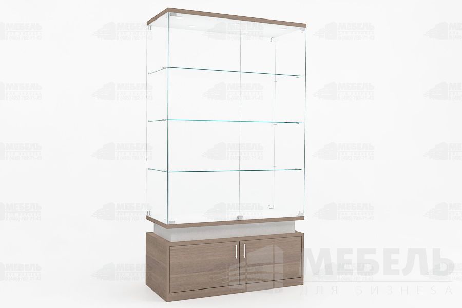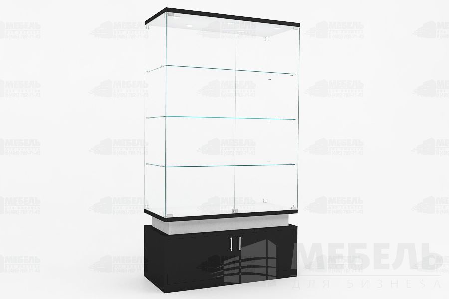 Стеклянная витрина для музея из ЛДСП и стекла 1100х500х2000мм. высота стеклянной части 1450мм с двумя распашными стеклянными дверьми на замке, стеклянные полки 3шт. (возможно дополнительно установить прутковую систему передвижения полок), задняя стенка стекло 6мм, основание тумба (высота 500мм) с распашными дверьми на замке.
